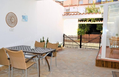 Charming terraced house at approximately 80 meters from the beach, with private patio. The house is distributed on two levels, with the living room and kitchen on the ground floor and the bedrooms on the first floor, with air conditioning. It sleeps up to six persons, the kitchen is fully equipped with dishwasher.