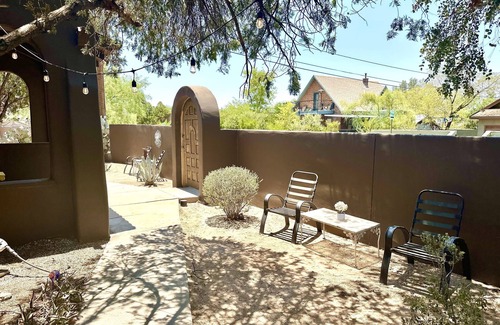 Escape into our Southwestern Vintage Getaway! Just two blocks from the University of Arizona, walk to all of the highlights of the quintessential and historic Sam Hughes neighborhood. Grill up some dinner beneath the twinkling string lights in your own private patio, or basque in the natural light that fills the apartment through the exceptionally well positioned windows. With a fully stocked kitchen, relaxing soaking tub, and ample outdoor space, Casa Luna is the perfect place to getaway!