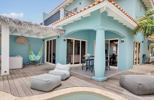 A lovely six-person villa on the Water Villas Bonaire resort. Like the rest of the villas on the peninsula of Bahia, Casa Pimienta is located on the water in this partially enclosed, luxurious residential area on the water of Laguna Marina. The house has a private pool overlooking the water.