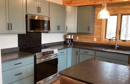 Outside, you can enjoy the breathtaking views of the mountainside from the large wrap around deck or sit by the outdoor fire under the covered patio on cooler nights. During the summer months, you are nearby local water activities like swimming, boating, and fishing on the lake, while winter visitors can take advantage of the community sledding hill or head up to Wisp Resort for a day of skiing or snowboarding on the slopes.