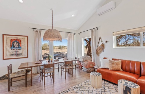 Beautiful one bedroom Casita with gorgeous views situated on a 40 acre tract of property in the high desert, just 25 minutes away from the main entrance to the Grand Canyon. The Casita comes with a kitchenette, private outdoor patio and a beautifully appointed bathroom. The unit is equipped with a wood burning fireplace for cozy cold nights and a mini split to keep cool in the hot Summers. The Casita is built on a tiny house model and is eco-friendly. There is a Commons are with a seating area, indoor dining area and an outdoor dining patio where you can relax, mingle with guests or unwind after a day of exploring the area.
