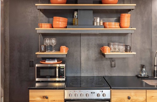 Honey Rock Landing's cave suites offer a unique retreat, carved into sandstone cliffs overlooking the Gunnison River, nestled within a working orchard. Enjoy rustic luxury, farm-fresh meals, and a tranquil escape. Each suite features a full kitchenette, natural shower, and a copper bathtub. The main level offers a king bed, with two queen beds in the loft. Step outside to a beautiful outdoor patio setting, perfect for enjoying the breathtaking views and a relaxing connection with nature.