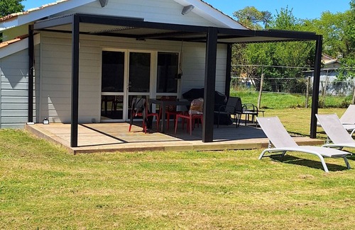 Brand new, air-conditioned two-star chalet of 28 m² with a 22 m² terrace. Located between Carcans and Hourtin in a small hamlet of a few houses in the middle of the forest, the place is ideal for resting and enjoying your holidays.