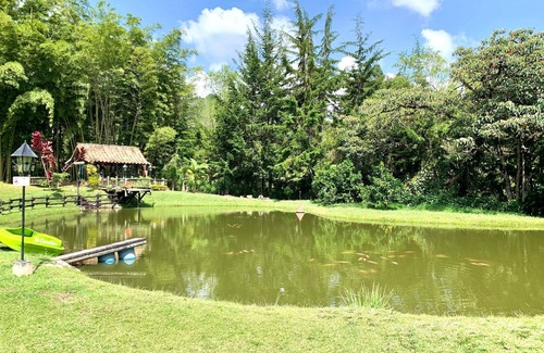 The 40m private chalet has everything you need for a good time as a couple or family, it has more than 500m of common green areas that can eventually be shared with another chalet without affecting your privacy, it has a fishing lake suitable for swimming, and kiosks equipped to enjoy a barbecue, children's games and large natural spaces.