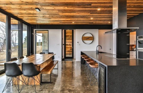 A large outdoor terrace will invite you to the 4 sasons BBQ with family and friends, right next to the 4 seasons SPA, which overlooks the St. Lawrence River with a breathtaking view. The completely fenced garden level offers you a modern and fully equipped kitchen as well as a large lounge inviting you to discuss and contemplate the mixed landscapes of mountains, rivers and who knows... maybe belugas. The central fireplace and heated floors will ensure the comfort of your guests while the pool table and home theatre will take care of the atmosphere.