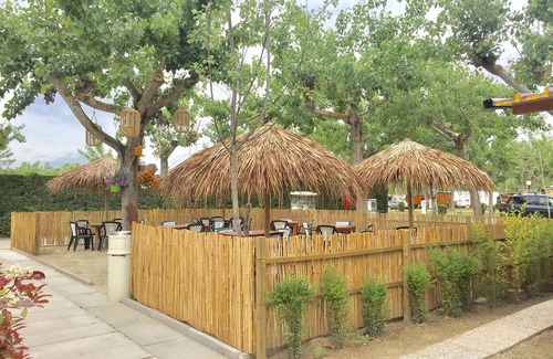 3 stars, 170 accommodations, reception (safe), 2 restaurants, pizzeria, bar, supermarket and laundry. Arcade, gas bottle changing, LocationLido di Dante. The chalet is located on a campsite. The campsite, which extends on a 10 000 square meter site includes mobile homes, bungalows and pitches. Part of the facility is a nudist area. Access is directly from the main road (asphalted). Parking (for 1 car) is available in a carport. Parking at the chalet. Specialair conditioning. TV reception takes place via satellite.For your safety, the accommodation is equipped with CO2 detector and fire extinguisher. PoolAll pools are available for shared use. Outdoor pool (usable from mid May to mid September, 12 m x 25 m, depth 1.2 m). paddling pool. LeisureIn the complex: tennis, table tennis, table football, boccia / petanque and bike rental. Animation for children from 4 years. Adult animation. Volleyball. Tennis. Playground, beach tennis Dogsallowed, EUR 8.00/pet per day. DistancesShopping 100 m, restaurant 100 m, town center 100 m. discotheque in 15 km. bank in Lido Adriano 5 km. pharmacy in Lido di Dante 100 m. thermal bath in Punta Marina Terme 10,8 km. cinema in Ravenna 15 km. Ravenna 8 km away. Mirabilandia amusement park 8 km away. In summer: Adriatic Sea 200 m in Lido di Dante. The beach is surrounded by nature in the natural park Foce del Bevano with over 3 kilometers of beach. Through a pine forest, the beach can be reached directly from the campsite. DivisionChalet, 1 floor, 3 rooms (including 2 bedrooms), 32 sqm, in total 6 beds (including 2 additional beds), on request additionally 1 child up to 2 years in a baby cot. RoomThe entrance to your chalet leads over 1 step. Living room with 2 additional beds on sleeping accommodation and access to the terrace (garden furniture). Bedroom with 2 single beds and 1 bunk bed. Bedroom with 1 double bed. Cooking nook in the living room with dining area (6 seats), gas stove (4 flames), fridge (icebox) and coffee machine. Bathroom with shower, 1 washbasin, WC and window. Terms of lease and pricesIncluded in the priceOutdoor pool, internet access, sunloungers at the pool (26.03.26-29.07.26, 30.08.26-03.10.26), parking place, tv, electricity, gas, water, local tax (under 14 years), Wireless Internet access. Side costs-Additionally(Payable when booking)/high chair - please order at booking on request 3,80 € per piece per day.Costs on the spot:/Obligatory:final cleaning 40 € per object per stay. local tax by local tariff (if charged).On request:baby cot 4 € per bed per day. air conditioning 8 € per object per day. sunloungers at the pool 5 € per piece per day (30.07.26-29.08.26), safe 3 € per object per day. bed linen 10 € per person per first time use and changing. hand towels 5 € per person per first time use and changing. parking place (additionally) 10 € per car per day.Deposit:EUR 50,-/object.