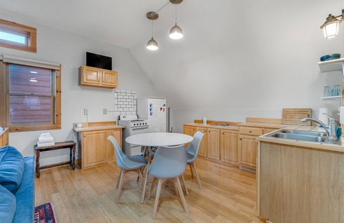 Ensuring larger groups can enjoy the space, a separate beautifully furnished studio is located above the garage. Highlights of the studio include bamboo flooring and a Jotul gas wood stove.