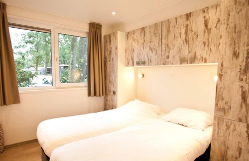 This comfortable chalet is located in the nature-rich holiday park of the Bad Hoophuizen Resort. It is located right on beautiful Lake Veluwe (Veluwemeer), where you can enjoy fantastic recreation. The historic city center of Harderwijk is 11 km away. The single-story chalet is fully furnished. In the bright living room, you will find a TV and the open kitchen includes a dishwasher and a microwave oven. There are two bedrooms, one of which has two single beds, which may be set up as a double bed and one with two single beds or bunk beds. The bathroom has a shower and a toilet. Enjoy time outdoors in the garden furnished with terrace and garden furniture. There's enough space to park one car outside the chalet. It is not allowed to charge electric cars at the chalet. Various holiday homes, tiny houses, lodges, chalets and villas can be booked at holiday park Resort Bad Hoophuizen for two to sixteen people. Holiday park Resort Bad Hoophuizen is a holiday park in development. Construction work may take place during your stay. Every effort is made to minimize any inconvenience.