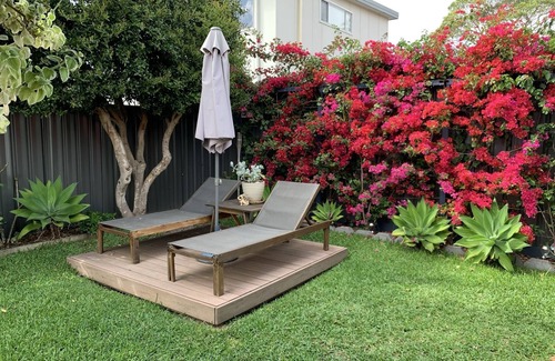 Private entertainment area with a BBQ, outdoor seating for 8 and two reclining chairs to soak up the morning sun. Nice garden area.