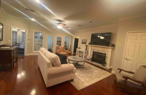 This fantastic house in Starkville offers 3 cozy bedrooms - master bedroom with king and twin beds, 2nd bedroom with queen bed, and 3rd bedroom with full bed. With 2 bathrooms, including a relaxing jetted bathtub, guests can unwind in style. The living room area provides extra space with 2 twin beds. This tranquil retreat is equipped with WiFi, an iron, washing machine, heating, and AC for your convenience. Plenty of parking space and a garage. We hope you enjoy what our place and Starkville have to offer.