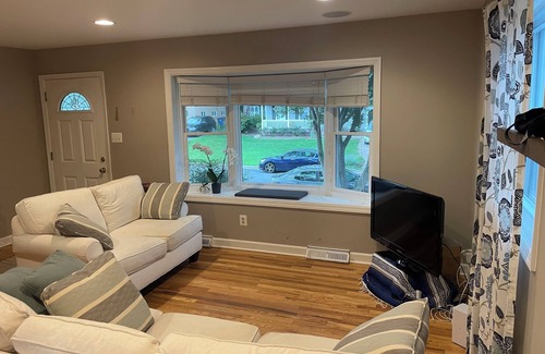 Peaceful house on a quiet street two blocks from the Navy Stadium with easy access to downtown Annapolis via the stadium shuttle or a pleasant 1.5 mile walk/bike. With three bedrooms plus a queen-sized sleeper couch, there's room for the whole crew. The location strikes a perfect balance of convenient access to downtown Annapolis with easy in/out access from the highway/grocery stores/etc. without the chaos that is downtown. When you're trying to get away from all the crowds downtown, enjoy the well-equipped kitchen and large deck with grill. Two driveway parking spaces plus plenty of on-street parking. Third bedroom (not yet pictured) has a twin-sized futon and twin bed.