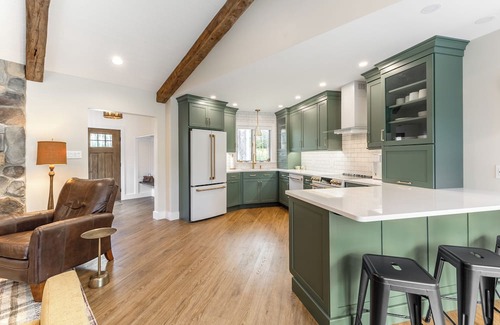The Lodge at Laurel Run is a beautifully renovated ranch-style home located in Petersburg, PA. Situated on over 16 private acres of woodland, this home is just a 15-minute drive from State College.