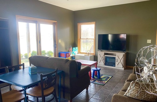 This Battle Creek Saint Mary's Lake house boasts 4 inviting bedrooms. Step into a wonderful retreat where comfort and relaxation await. Each bedroom is thoughtfully designed to provide a charming and cozy atmosphere for guests. With 3 bathrooms, there's plenty of space for everyone to freshen up and get ready for the day's adventures. A separate lakefront party pavilion with bar, semi kitchen with its own deck and propane grill are great for entertaining and help make your holiday one for the books with a stay at our place.