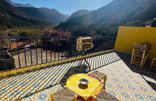 Enjoy a relaxing stay in this beautifully designed apartment offering breathtaking panoramic views of the picturesque Ourika Valley. The space is thoughtfully decorated with traditional touches, providing both comfort and style for your stay. Enjoy a morning coffee on terrace, you'll be captivated by the natural beauty surrounding you. Perfect for couples, solo travelers, or anyone seeking a tranquil retreat, this apartment offers the ideal serene landscape.