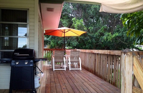 This unique Old-Florida upstairs cottage is a true gem. Located West of US 41, a mile from the beach and a block to the river. Imagine a vacation where you park your car and hang up your keys. Everything you need is within walking or biking distance. This 750 sq. ft. one bedroom is complete with new flooring, new furnishings, and new fixtures. The bedroom features a queen size bed with two large bay windows giving you a beautiful Florida sunrise. Step through your bedroom door into a cozy living room and kitchen with extensive windows throughout allowing you to take in the Florida sun regardless of what room you're in. The private upstairs deck is the best 'room' in the house. Get ready for an amazing day utilizing our included bikes and assortment of beach equipment including chairs, umbrella, cooler, etc... After a day in paradise come home to a barbecue on your deck and a relaxing Florida evening.