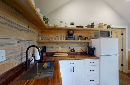 Nestled below towering Oak trees, this pet friendly rental offers everything to relax and unwind. Outside you will find plenty of yard space, trails through the woods, and outdoor furniture to take it all in. Inside, you will find a full shower, reliable WIFI, Keurig coffee maker, and TV's, providing hotel-like amenities while soaking up some quality outdoor time with friends and family!