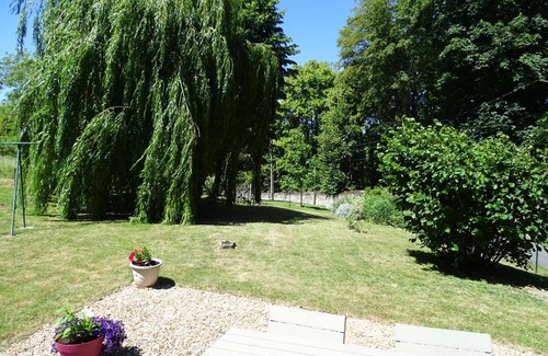 Ground floor: equipped kitchen, 1 bedroom (1 x 1.40m bed), 1 bedroom (2 x 0.90m beds), shower room, toilet, large living room (with wood stove, wood: €0.50 per log). Heating included (heat pump). Large enclosed garden with terrace. Children's playground available at the communal lake 100m away.