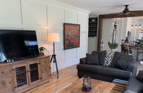 Spacious home on 6 acres of land with a modern country feel, available for monthly rentals during fall & winter months. Enjoy the fall foliage, near by hiking/biking/snowmobile trails. 250 M away from public park & access to lake Memphremagog. Great for Ice Fishing, 6 KM away from the Vermont US Border & the village of Stanstead where you can find all you need, as well as 27 KM away from the town of Magog that has many more options for grocery stores, bars & restaurants. You are less than an hour away from Owls Head & Mount Orford ski resorts as well as the Jay Peak Resort in Jay Vermont.