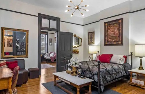 Enjoy a stylish experience at this centrally-located Airbnb. Built in 1895 and bursting with character! Located just 10 minutes south of downtown St. Louis and only 5 minutes south of the Anheuser Busch brewery. This one bedroom one bath sleeps 4 comfortably with spare sleeping spaces and offers a full kitchen. Free parking on sight. Lots of fun and unique features, vaulted ceiling’s, comfy couches, beautiful artwork and even a spiral gum ball machine! We are the St. Louis Airbnb ⚜️