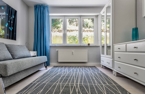 You can expect a tasteful, high quality and cozy apartment with 60 m², with 2 bedrooms (room 1: box spring bed 200x200 cm, room 2: a high quality sofa bed 140 x 200 cm), 1 living room, a separate shower room and a modern kitchen with full equipment. Max. 4 people