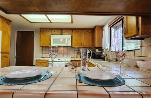 Surrounded by towering pine trees, this home features vaulted ceilings, propane fireplace, Wi-Fi, smart TV, foosball table, fully-stocked kitchen, large deck, and a spacious backyard. Minutes from groceries, gas, golf, wineries, fishing, swimming, and restaurants. Just 40-minutes to Kirkwood Ski Resort.