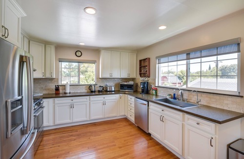 Escape to Silicon Valley with this beautiful vacation rental in South San Jose! Nestled 7 miles from downtown, the 4-bed, 2-bath home offers a quiet place to return to each evening. Set out on Los Gatos Creek Trail one day, pack your clubs for a tee time at Los Lagos Golf Course the next, and top off your stay with a visit to the Winchester Mystery House. After your adventures, return home for a backyard BBQ before heading in for a movie night with the 4K projector. The Golden State awaits!