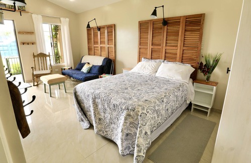 Perfect for 1 or 2! Completely renovated from the ground up this stand-alone studio apartment has a narrow private entrance, kitchenette, sitting area, and work space. It is the ideal place to relax or work. This gem is securely tucked behind the main house across from the soccer park in Nuevo Arenal and is completely fenced; perfect walking distance to the bus stop and all the town has to offer.