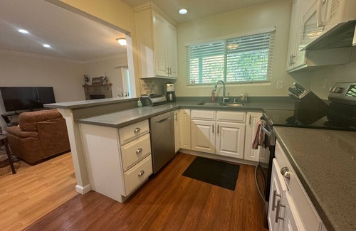 Consider this townhome your home away from home while you visit Pleasant Hill, Walnut Creek or any nearby cities. Centrally located with easy access to commuter roads, parks, trails, shops, Bart. This amazing property features 2 bedrooms with a king bed and a murphy queen bed and 2 full bathrooms. With amenities like Smart TVs, a fully stocked kitchen, new furniture, a height adjustable motorized desk, WiFi, heating, AC, washer/dryer and garage, guests can work or relax and unwind. Kickback and enjoy everything Pleasant Hill and our townhome has to offer.