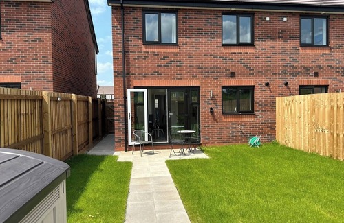 Modern 3BR semi-detached home on Cheshire's edge. Sleeps 4 with double, single and large single beds. Includes en-suite, family bathroom and downstairs WC. Fully equipped kitchen, garden, parking for 2 cars and EV charger. Ideal for families or business stays.