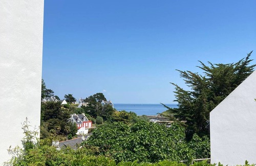 Nichée sur les hauteurs de Sauzon, cette villa atypique sur plusieurs niveaux vous offrira une très belle vue sur la mer. Vous y trouverez :