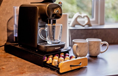 The large double-aspect lounge and dining area is simple and welcoming. It comes with a large L-shape sofa, coffee table, a dining table, and comfy new carpets underfoot. This light and spacious room features venetian blinds and a couple of smart radiators for the colder nights. There’s another projector system to watch your favourite shows or movies on, with access to various streaming apps and FreeView live tv.