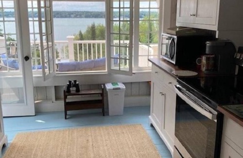 The new, fully equipped kitchen will have everything you need for a comfortable stay including all new appliances. From the kitchen, you have access to the inviting deck to enjoy the impressive views as well as the lovely patio furniture put in place. This cottage is the perfect balance of well maintained beauty from the past, and the modernization of today.