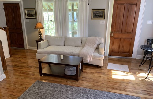 High end in-law suite, 850 square feet. Furnished with antiques, original oil paintings, king size bed, real stone quartzsite counter, designer down filled couch, flat screen, etc. In upscale neighborhood 150 yards from Tulane. Seven blocks from street car and grocery store. Very secure with cameras and behind 7 foot fence with locked gate. This home is in the back yard of a larger house so its quiet. No shared walls. Has two front doors but this is not a double. Nice, large yard. Quiet block on 1228 Pine St, New Orleans. Mix of single family and college homes on block with lots of bars and restaurants within walking distance. Large front home has a small family. This is a nice clean place. No pets and no smoking inside but smoke whatever you want outside. Street parking. Washer & dryer. All wood floors.