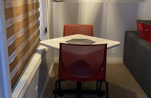 This basement guest suite is spacious, neat, well maintained and is located very close to the Spruce Meadows multipurpose sports facility. The neighborhood is safe, well lit and it has a calm ambience with very low level of noise from traffic. It has green spaces around and is also well ventilated.