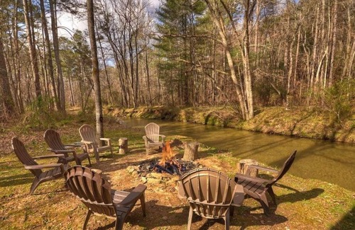 Clear Creek Sits on the Creek, Hot Tub, Fire Pit and Pool Table! | Cabin in Talking Rock