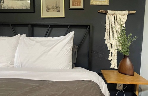 Hip and Comfy, this new modern studio, is five min from the airport and a quick jaunt to downtown. Sink into the luxurious queen bed, make your cup of morning coffee, and rejuvenate in the lush bathroom. The patio is perfect for a slow morning or a cocktail.