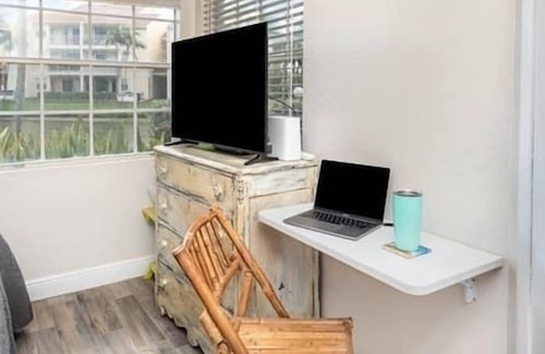 Kick back and enjoy the "Salt Life" in this centrally-located beach-themed spacious one bedroom one bath condo just half a mile from the beach. You may use all the facilities including the equipped kitchen, and complimentary coffee/tea. The condo layout is featured towards the end of the listing pictures.