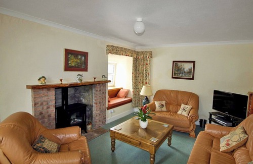 Living room: TV, DVD Player, CD Player, DVDs, Electric Woodburner
