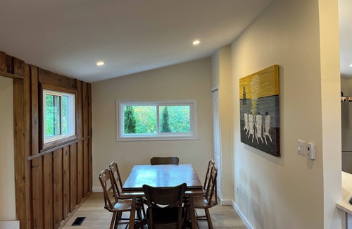 One month minimum (due to Town rules). Fully furnished. "St. Clair Cabin" is located in Collingwood's best kept secret. Just off Highway 26, less than 1 min walk to Georgian Bay public water access (drop in your kayak or paddle board, go for a swim), very private water access (not popular and no public parking). 12-15 min easy drive to Blue Mountain and the "Village". ON THE BUS route to downtown Collingwood for easy access to great restaurants and where you can transfer to the Blue Mountain Bus Line. St. Clair street connects to the amazing Collingwood Bike Trails that can take you all over the Town. This cozy cabin has 3 bedrooms. Sleeps 6. Pets allowed with approval and pet fee. Hot Tub on back deck available year-round, with water views of Georgian Bay. This property is short term rentals of 1 month or more.