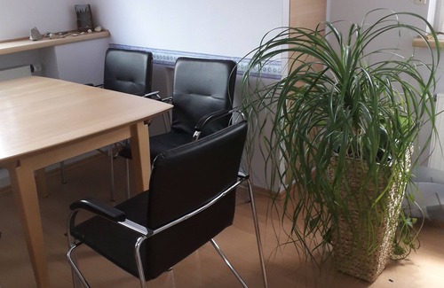 The row house is located on a side street. You have a separate entrance, and in front of the house there is a reserved parking space for your car.