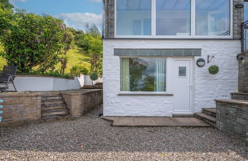 Enjoy fabulous far-reaching views of Lake Windermere and the surrounding fells from the private patio and gorgeous shared garden areas of Larchside, this spacious, fully furnished, one bedroom apartment. A perfect place from which to explore the Lake District's stunning landscapes. Larchside offers the best of both worlds, a cosy base to relax, with Bowness on Windermere and Lake District's attractions a short drive away. There’s designated parking for one car, and free fast wifi.
