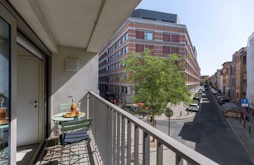 Experience the comfort and style at this new studio in the heart of Antwerp. Boasting a charming terrace, this contemporary retreat offers the perfect setting for a relaxing and unforgettable vacation. The inviting deck beckons you to unwind, basking in the warm sun or enjoying coffee.