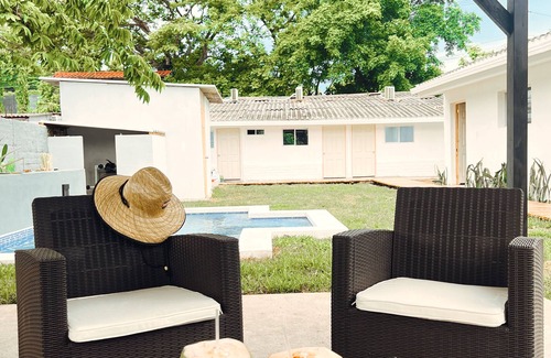 Casa San Alfonso te espera para una estancia inolvidable: habitaciones para grupos desde 2 a 6 personas, camas cómodas, aire acondicionado, piscina refrescante, pérgola relajante, estacionamiento compartido con otra propiedad sujeto a disponibilidad (un vehÍculo por habitación permitido) y wifi gratis; a tan solo 10 minutos caminando de playa El tunco. Justo afuera encuentra una cevichería, tienda de conveniencia y parada de autobús. ¡Te esperamos!