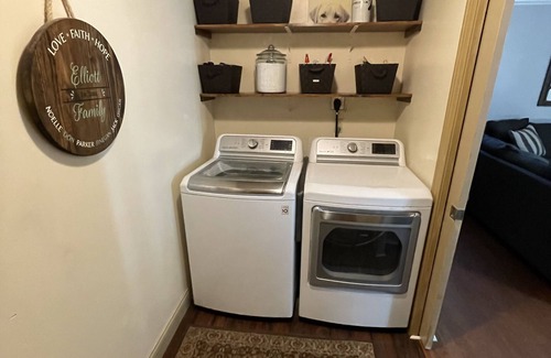 Ideal for families. Backyard has a brick patio with grill and fire pit. Front porch to enjoy the friendly and safe neighborhood. 1 car garage and driveway parking. Security system. Family-friendly. 2 queen size beds 1 full, 1 full bed with full trundle, 2, full beds, 1 full sofa bed, 1 twin sofa bed, 1 rollaway twin bed with space for 2 queen air mattresses if needed. Pet-friendly. This home has great reviews and is a welcoming environment to make the most of your football weekend.