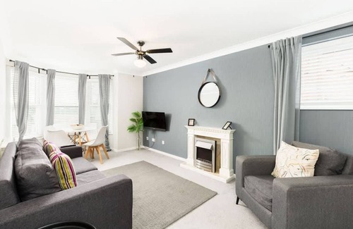 Well-equipped and clean 2-bed flat with smart TV, full kitchen, desk space, and ample parking. Ideal for work crews or split stays.
