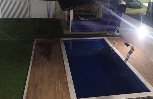 Gated community the house has 04 rooms and one suite. Pool kiosk .On the ground floor has a bedroom a living room, the kitchen and toilet and balcony, on the first floor has 03 bedrooms and one suite and a social bathroom and balcony .No kiosk has the barbecue, pool table and bathroom. The house is very airy, bedrooms and large living room. The house has fans in the bedrooms.