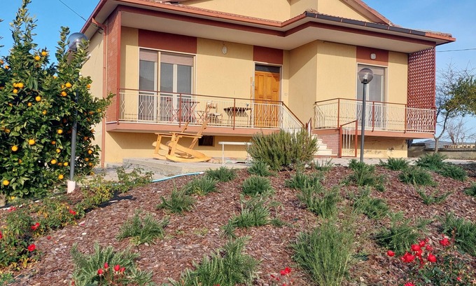 Welcome to Abruzzo and Casa Leone - we invite you to relax and enjoy the sights, sounds and tastes of Italy’s least populated region. This is a special area of Italy – the 360 degree views from Casa Leone and as you travel to the nearby charming hilltop towns are breathtaking. Casa Leone is a 1300 square foot home with two large bedrooms and one bath. Set amongst 150 olive trees, it has panoramic views of the Gran Sasso and Majella mountains, is about 25 minutes from the Adriatic coast, with its miles of sandy beaches and also 35 minutes to the mountains. The house is perfectly positioned for a beach holiday, cycling or hiking or sitting on one of the balconies or the terrace and watching the sky as night falls.We live in the house next door to Casa Leone – the two houses are gated and share a common driveway. You will have all the privacy you want but we are available onsite for any questions or if you need anything during your stay.Casa Leone comprises two bedrooms, one with a king bed and one with a queen bed and a bath with shower/tub and washer/dryer. There is a large living room with a TV as well as a smaller sitting room for reading. There is a fully-equipped and retro kitchen with an espresso maker, microwave, stove/oven, fridge/freezer, cookware, cooking utensils and toaster. We will provide you with as much olive oil as you can use – made from our own olives. The house has split air-conditioning/heating units in both bedrooms, the kitchen and the living room and wifi.Outside, you will find a large terrace with a dining table and chairs, sun loungers, a gas BBQ/grill and outdoor lighting for alfresco dining. The property contains olive trees and various types of fruit trees (including orange, plum, pomegranate, fig, walnut, almond) for you to enjoy, depending on the season. The nearest village is Elice, located about 1 km from Casa Leone. The countryside surrounding Elice is stunning and there are wineries and hill towns to explore, including Penne, Atri and Citta Sant’Angelo. Most small towns host a number of festivals throughout the year. There are direct bus and train services from Pescara to Rome and Ryannair operates regular flights from Stansted, Brussels, Frankfurt and Milan to Pescara airport.You will need a car to enjoy Casa Leone and there are car hires at the Pescara airport and Pescara train station. All guests, including children, must be present at check-in and show their government-issued photo ID card or passport