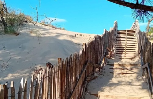 Conveniently located, "Les Terrasses du Lac" Resort offers easy access to various amenities and attractions. The vibrant center of Mimizan is just 4 kilometers away, while the center of Biscarosse is within a 40-kilometer radius. For those seeking urban exploration, the bustling city of Bordeaux is approximately 110 kilometers from the resort. Please note that the property does not have a lift, ensuring a peaceful and serene atmosphere throughout your stay.