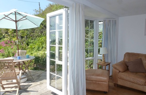 A delightful,individual wooden chalet nestled into the side of the cliff with amazing views over the beach at Crackington Haven. Sheltered, private garden and patio with sea-views. On the coast path,a few meters from the lovely beach and close to a couple of great cafes and an excellent pub overlooking the sea. The local bus service stops by the beach. Very comfortable accommodation with oak floors and leather sofas and open plan living to take advantage of the superb views. Ample heating. A great place to stay at any time of year.