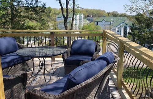 The King Cottage sleeps 6-8 1350 square feet cottage with 400 square foot deck..King size bedroom ,full bath, loft with a queen bed and sleeper sofa, full living room with sleeper sofa full kitchen, dining room..washer and dryer pull up parking 1/2 bathroom downstairs with washer and dryer great view from the deck that’s the only cottage in Branson that has breakfast included. We’re famous for our biscuits and gravy and our waffle bar. outdoor seasonal pool , game room salt water swimming pool, pool table walking distance to the Titanic and the famous trip also 20 restaurants and shows we are in a wooded area next to the Capital resorts